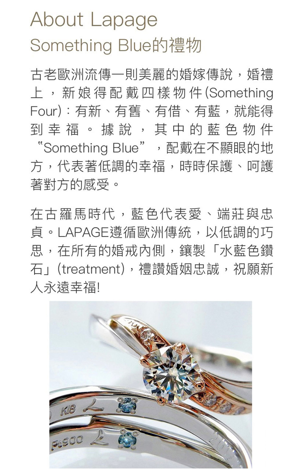 【LAPAGE】日本進口 微風 鉑金鑽石對戒(森沐系列) MOMO購物 價格 70100 元,相遇初始的第一頁,內圈鑲製藍色鑽石幸福傳說... 規格說明